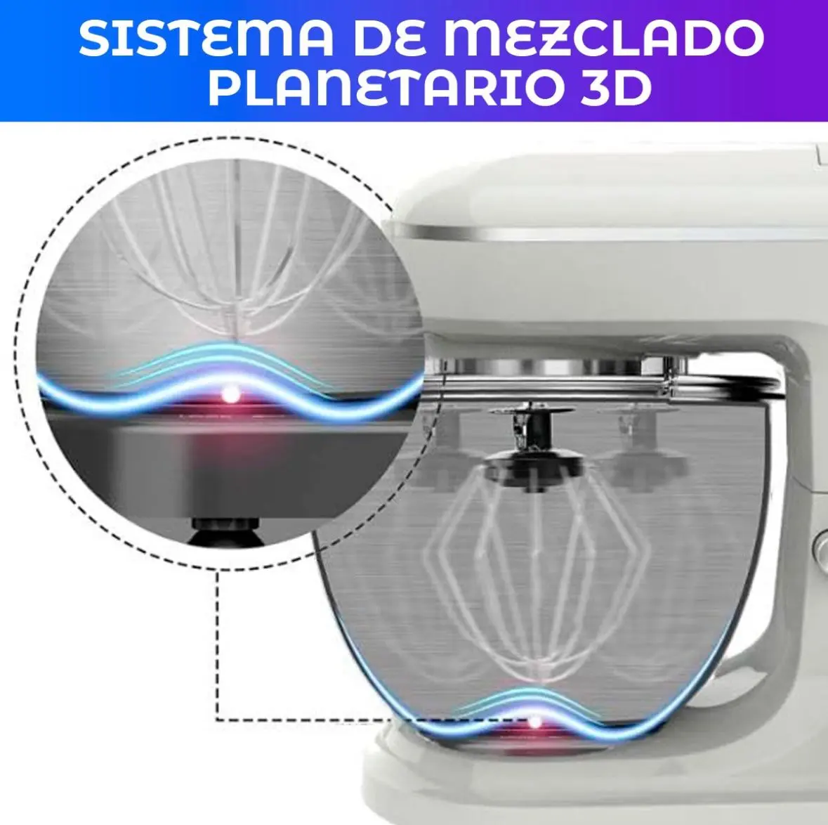 La estructura está fabricada con materiales resistentes y duraderos, incluyendo un bowl de acero inoxidable de gran capacidad. Su diseño ergonómico y elegante permite un uso cómodo y seguro, además de embellecer tu cocina.