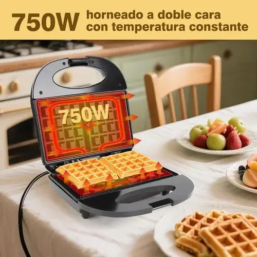 Diseñada en metal resistente y duradero, la Wafflera antiadherente está hecha para acompañarte durante años. Inversión segura, desayunos felices